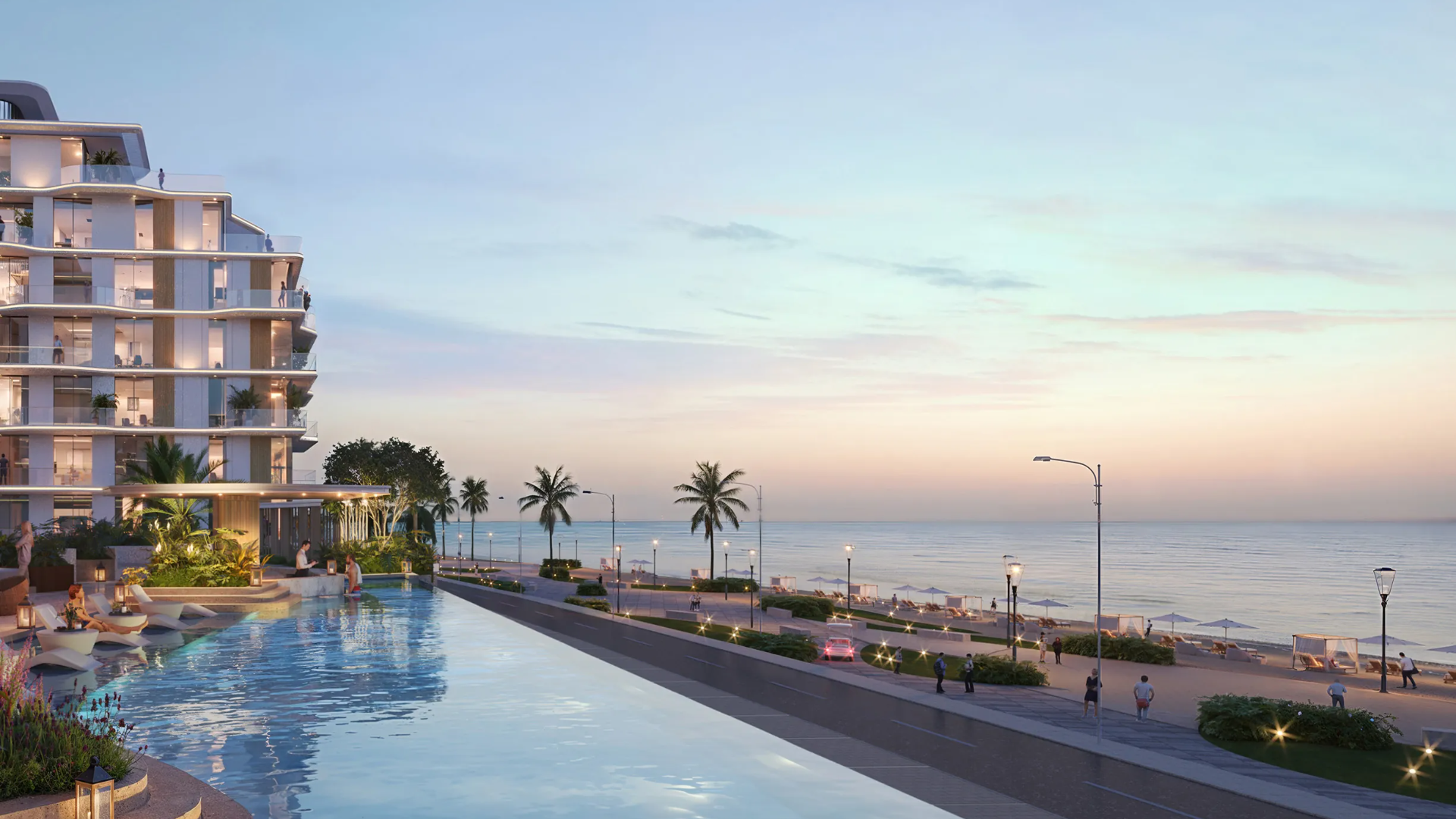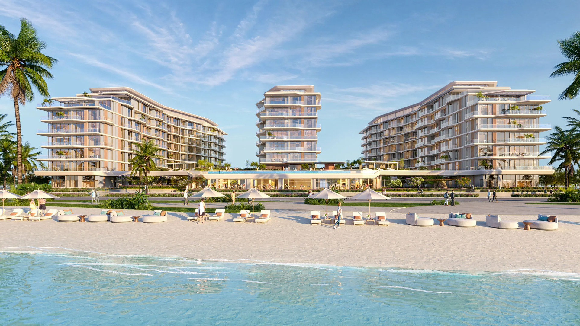 The development offers a stylish range of 1, 2 & 3-bedroom beachfront apartments, designed with spacious layouts, sophisticated interiors, and wide balconies. Expansive floor-to-ceiling windows allow natural light to fill the homes while showcasing beautiful views of the surrounding waterfront and landscaped spaces. Residents will also benefit from a variety of lifestyle amenities, including swimming pools, leisure areas, and convenient beach access, creating a relaxed resort-style atmosphere for everyday living.