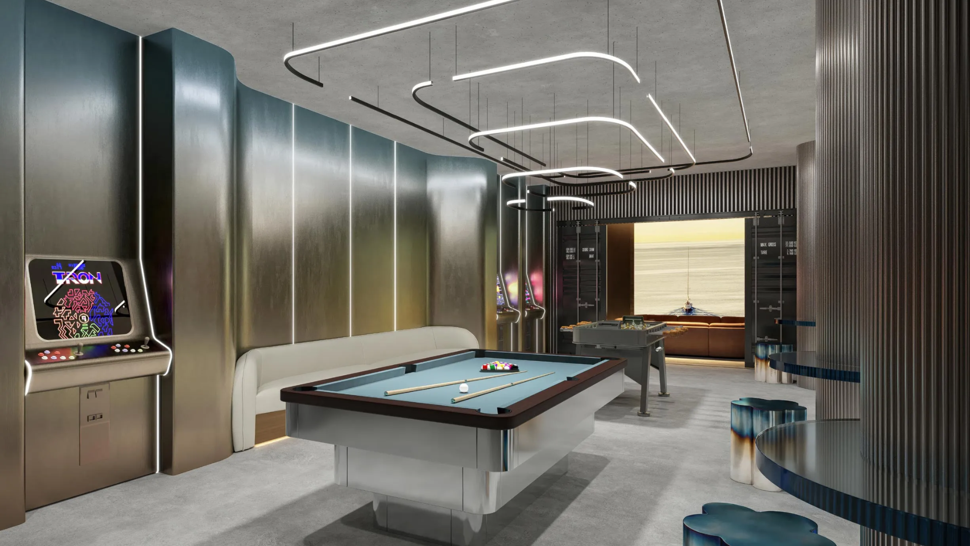 Located within Rashid Yachts & Marina, formerly Mina Rashid, Portside Square offers a unique blend of heritage and modern luxury across 6.8 million sq. ft. The district features a 430-berth marina for yachts up to 330 feet, the Queen Elizabeth 2 (QE2) floating hotel, a floating yacht club, and a 1,640-ft canal-style pool.