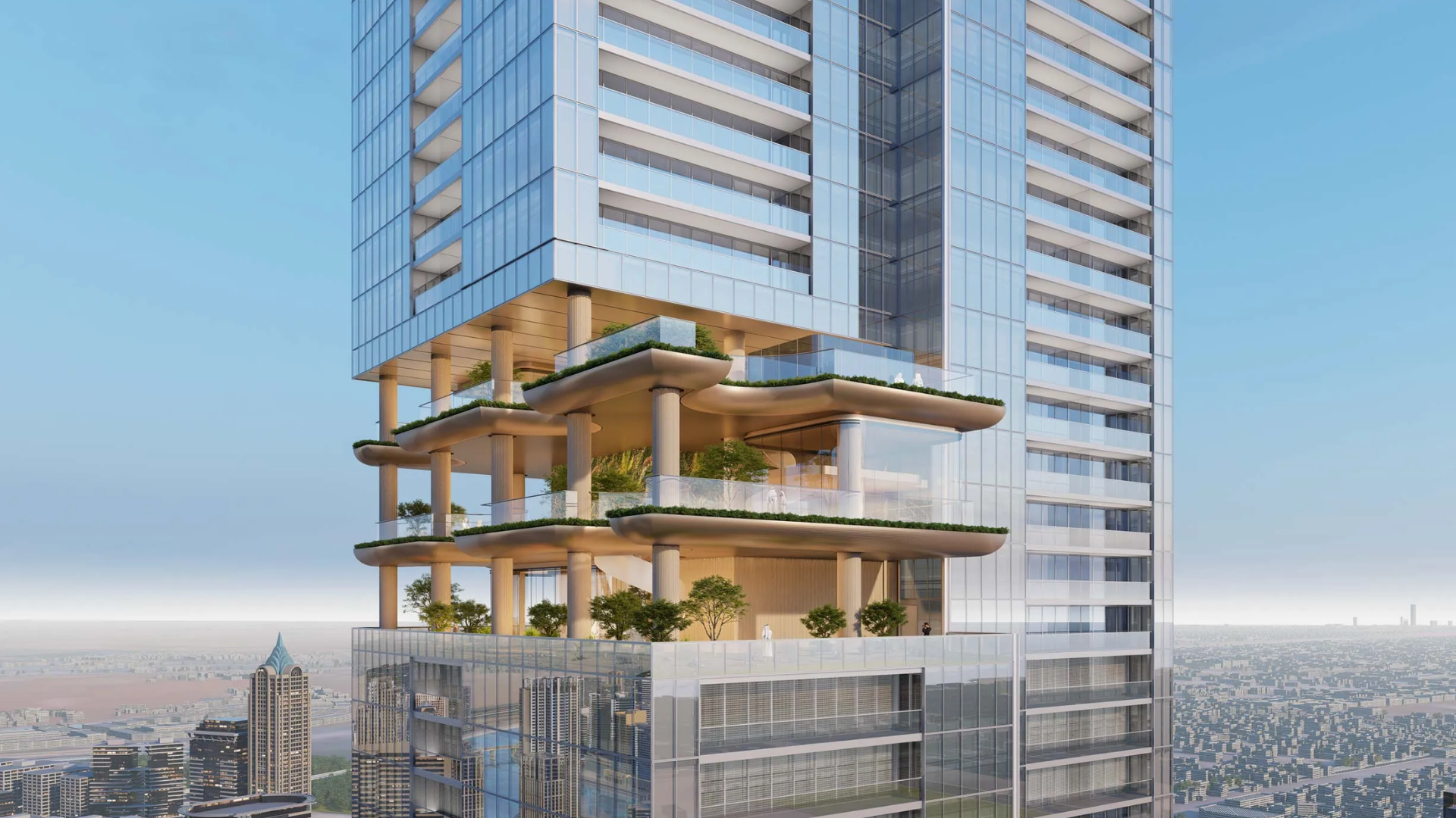 Four vertical SkyParks integrated throughout the tower bring nature into the skyline — offering pools, landscaped decks, lounges, fitness spaces, and calm garden environments to create a harmonious balance between wellness and luxury.